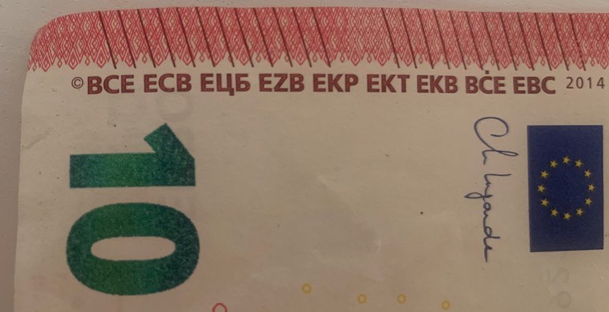 Euro banknotes are marked © ECB:
